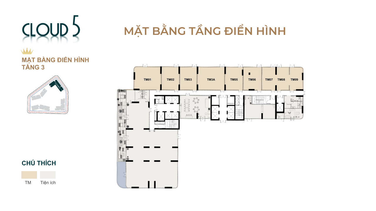 Mặt bằng tầng 3 thiết kế trung tâm thương mại và tiện ích dịch vụ