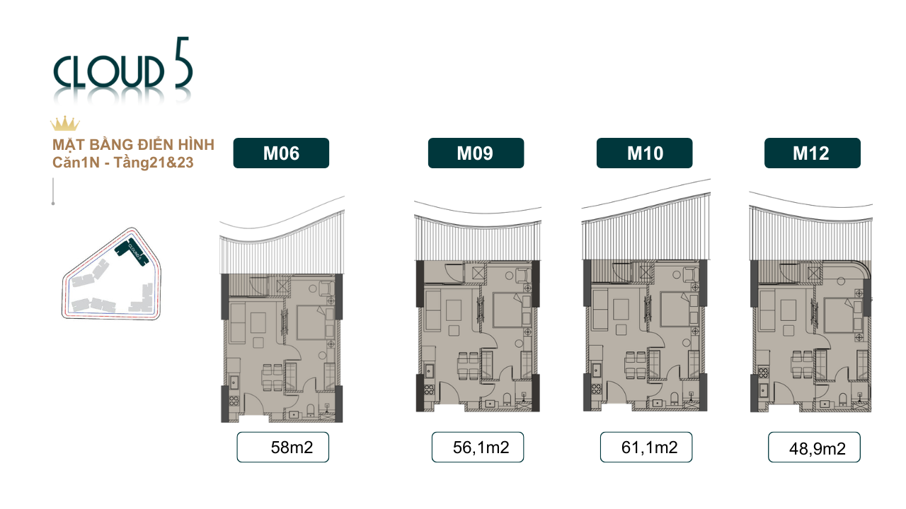 Cả nhà tham khảo căn 1 ngủ tầng 21 và 23